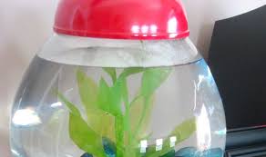 Well it turns out gumball machines make for the coolest fish tanks. Dust off that old candy dispenser and create this retro funky gumball fish tank. To make your gumball fish tank: Dissemble the gumball machine and take out the glass dish. The only real thing standing in the way of you and your funky gumball fishtank is the gumball dispensing mechanism underneath the glass dish. If you filled your machine with water now it would just pour through the machine and out the dispenser in the bottom. So you have to seal the mechanism off from the glass dish. There are two ways to do this. You can either cover and seal the gumball mechanism with a round plastic disc, or cut a piece of glass to fit in there. Either way you will need aquarium sealant silicone to finish the job and make a water tight seal. Once you’ve sealed off the bottom of the dish decorate your aquarium with rocks and plants and then welcome your fish to it’s new home! Be sure to clean your gumball fishtank once a week and move your fish to a larger home once he outgrows his fabulous gumball fishtank.