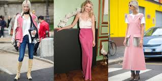 That's a beautiful, modern outfit. The black and white gingham jacket is worn atop white shirt that is tucked in black slim-fit pants that are styled with high boots and dark red handbag. Here we see a pastel colored look that consists of a beautiful blouse tucked in white trousers that are worn with pale pink handbag and cream beige suede high-heeled pumps.